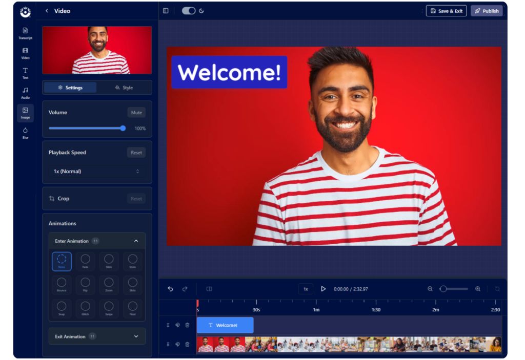 You can record great lessons without editing, but a few simple refinements can significantly boost engagement. With the Online Video Editor, you can trim mistakes, remove awkward pauses, add text overlays, incorporate music, and enhance your video with visuals and effects. A polished video can make complex topics easier to absorb.